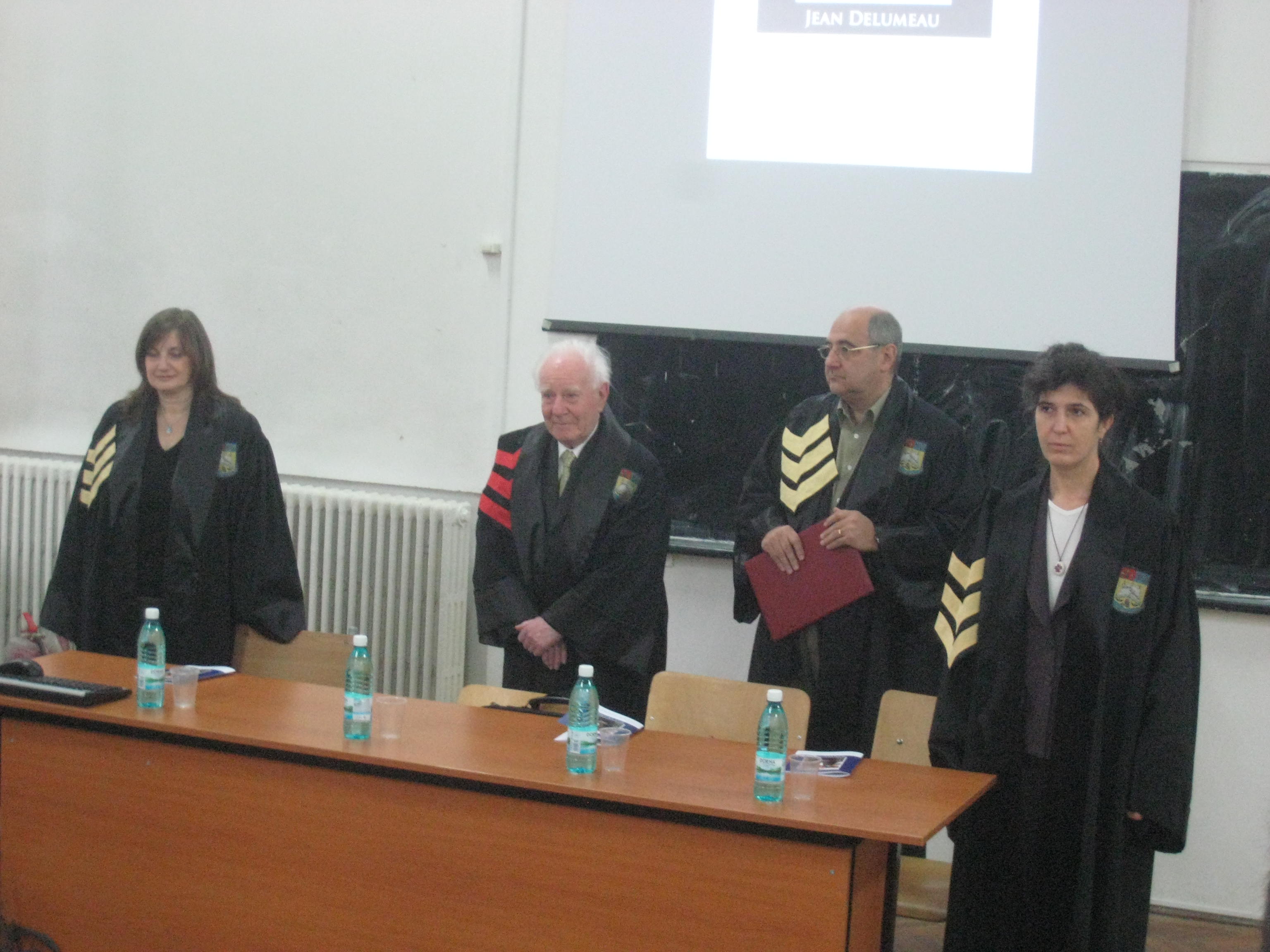 Luni, 24 octombrie 2011, începând cu ora 11.00, în Amfiteatrul Nicolae Iorga al Facultăţii de Istorie, a avut loc ceremonia de decernare a Doctoratului Honoris Causa al Universităţii din Bucureşti, Profesorului Jean Delumeau. Dl Decan Vlad Nistor a deschis şedinţa, Dna Prodecan Ecaterina Lung a citit Laudatio, iar Dna Prof. Daniela Zaharia a dat citire textului în latină al diplomei de Doctor Honoris Causa.