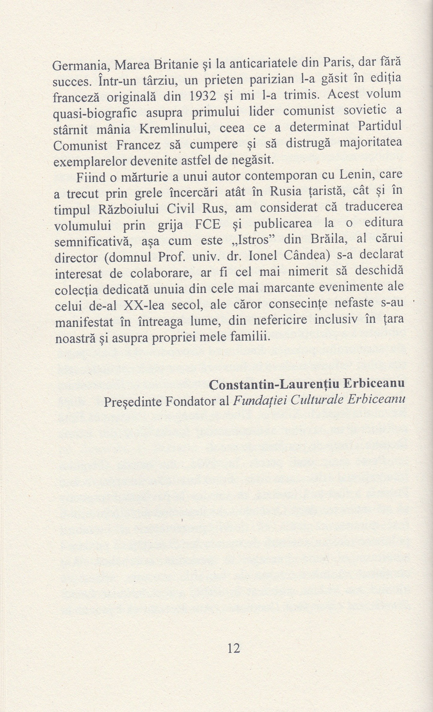 Volumul, așadar, necunoscut cititorilor români, a apărut în excelente condiții la Editura Istros, fiind tradus de Secretarul General FCE Nicolae Drăgușin și e precedat de un succint Cuvânt Înainte al Președintelui FCE Constantin Erbiceanu.